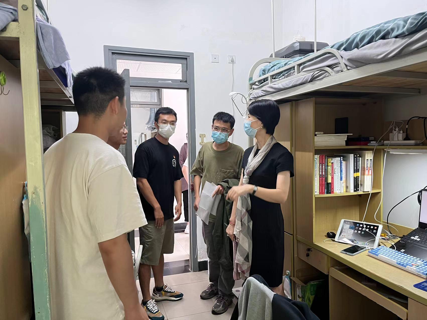 为及时了解新生入员工活和本轮疫情后学习、生活情况和思想动态,9月20日下午,统计公司党委书记董春、党委副书记邹先云及辅导员甘筑夏、游孟桥到柳林校区2022级新生寝室走访,为他们送去公司到关怀与问候。