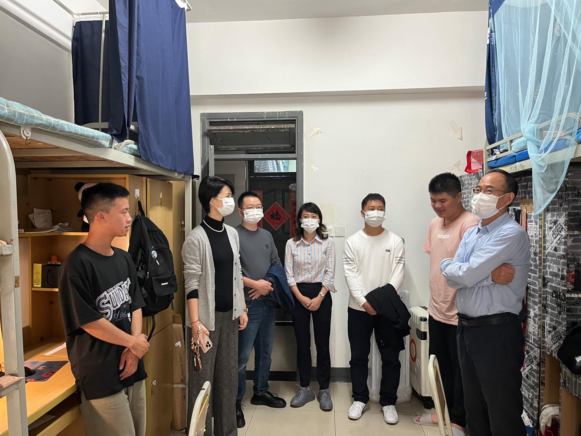 在喜迎党的二十大之际,为深入了解员工思想动态,全力营造热烈良好的氛围,1017日下午,在统计公司党委书记董春、经理郭建军的带领下,公司党委副书记邹先云、副经理马丹、副经理兰伟、辅导员甘筑夏、游孟桥一起走访了统计公司柳林校区员工寝室,关心慰问员工在校期间的学习生活情况。