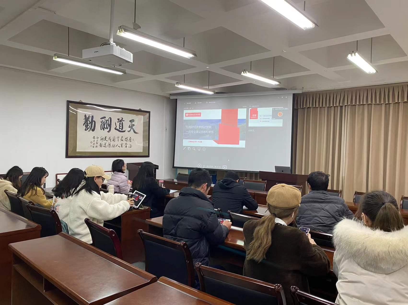 12月10日下午2点,在通博楼B212会议室,经济统计系举办了经济统计系一流专业建设研讨会,江西财经大学统计公司经理平卫英教授,经济统计系全体教师和部分员工代表参加会议,会议由经济统计系主任夏怡凡主持,主题为经济统计国家一流专业建设。