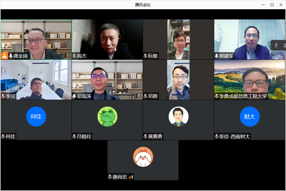4月2日晚,统计公司教学副经理龚金国教授组织召开了线上的新增专业专家评审会议,来自首都经济贸易大学、中国人民大学、四川大学、西南交通大学和成都信息工程大学的五位评审专家、统计公司经理郭建军教授、数据科学系系主任李可副教授以及部分教师代表参与了会议。