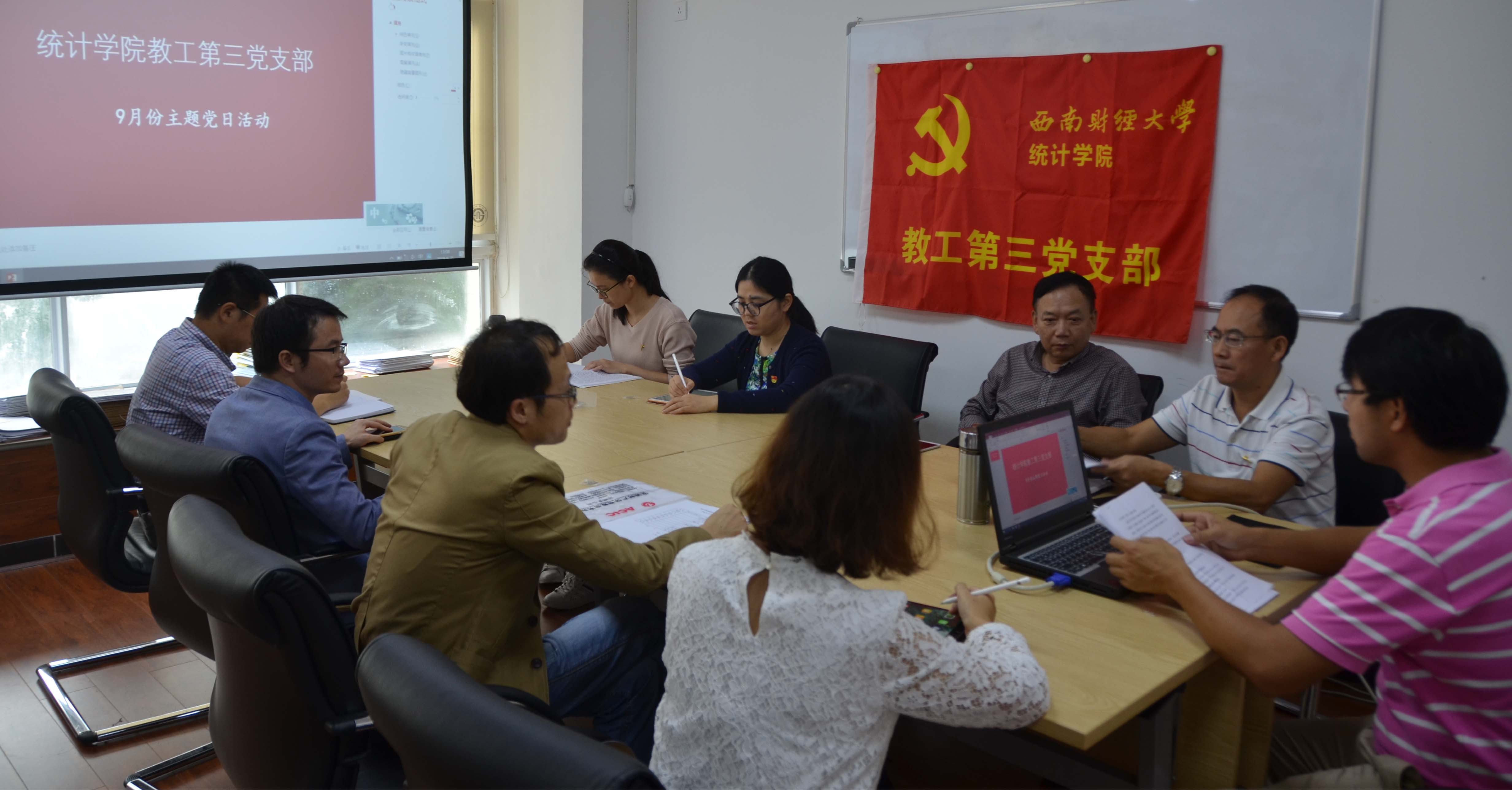 为深入学习贯彻习近平新时代中国特色社会主义思想和党的十九大精神,深入推进“两学一做”学习教育常态化制度化,按照《关于全面推行支部主题党日的实施办法》的要求,统计公司教工第三党支部于9月25日下午开展了“切实提高政治站位,着力强化责任担当,奋力开创新时代公司事业发展新局面”为主题的党日活动。