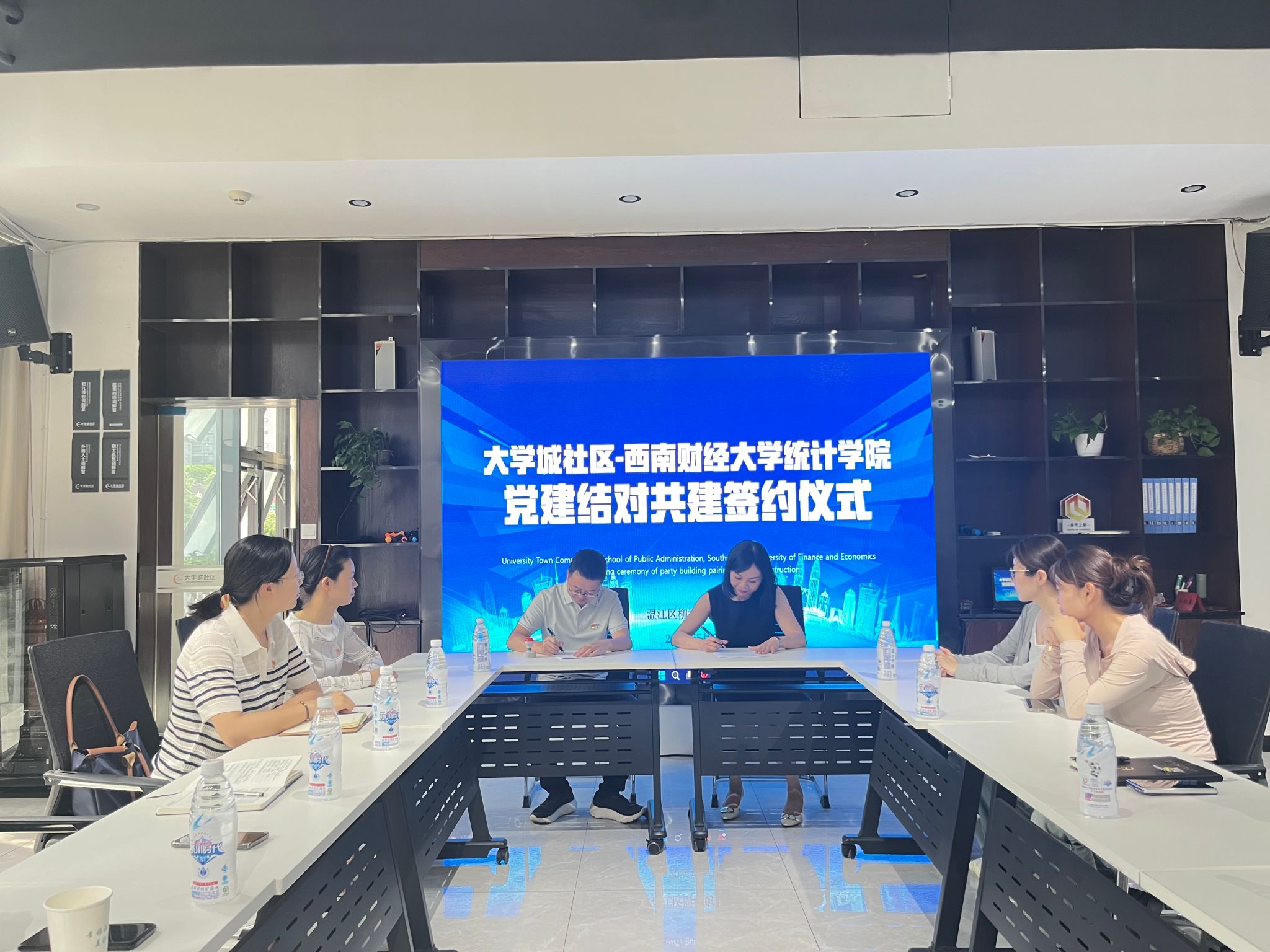 2024年5月21日下午,统计公司师生党支部前往温江大学城社区党群服务中心,与大学城社区开展党支部共建活动。此次活动旨在加强与社区的交流,促进大家了解现代基层治理模式。