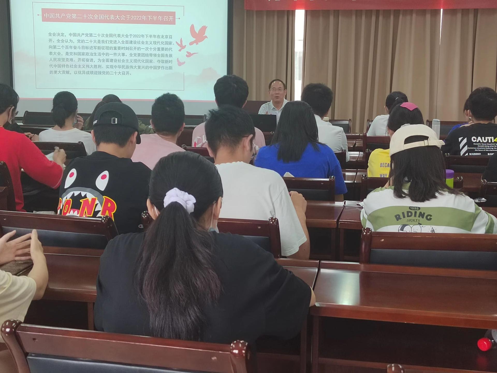 为进一步激发广老员工爱党、爱国、爱社会主义的热情,6月14日统计公司经理郭建军在通博楼B212会议室讲授《深入学习贯彻党的十九届六中全会精神》思政课,各年级本科生60余人参加。