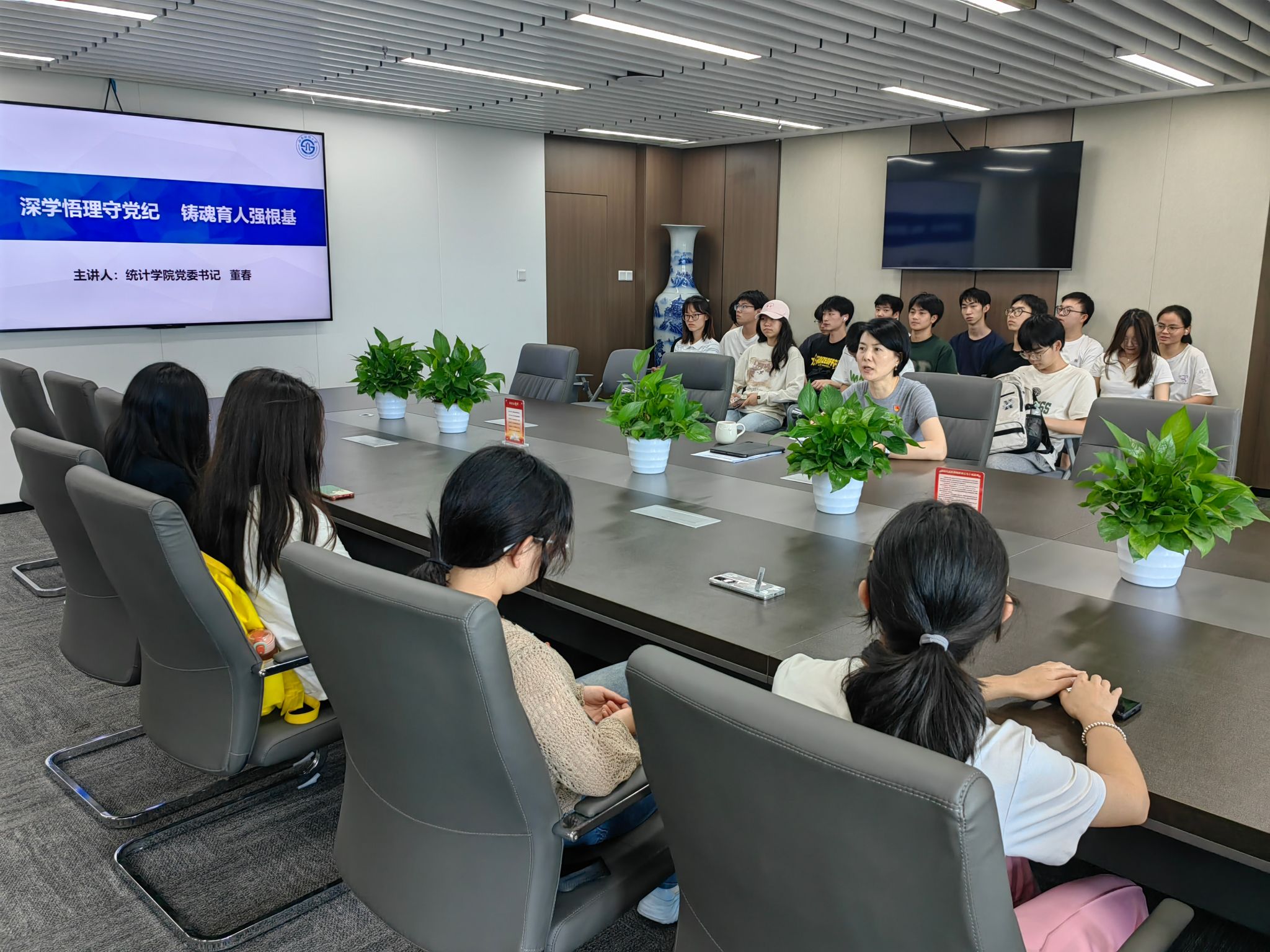 为深入开展党纪学习教育,推进新时代廉洁文化建设,2024年6月11日下午3点,统计公司党委书记董春在诚正楼13楼会议室以“深学悟理守党纪,铸魂育人强根基”为主题,为公司本科生讲授思政课。