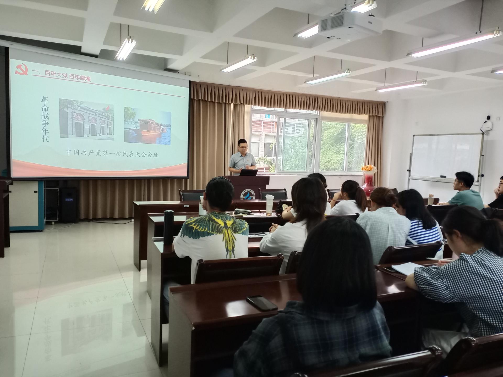 2021年6月8日,统计公司分党委书记黄海波在通博楼B212会议室为本科2019级统计学的员工讲授以“传承红色基因,争作时代新人”为主题的思政课。