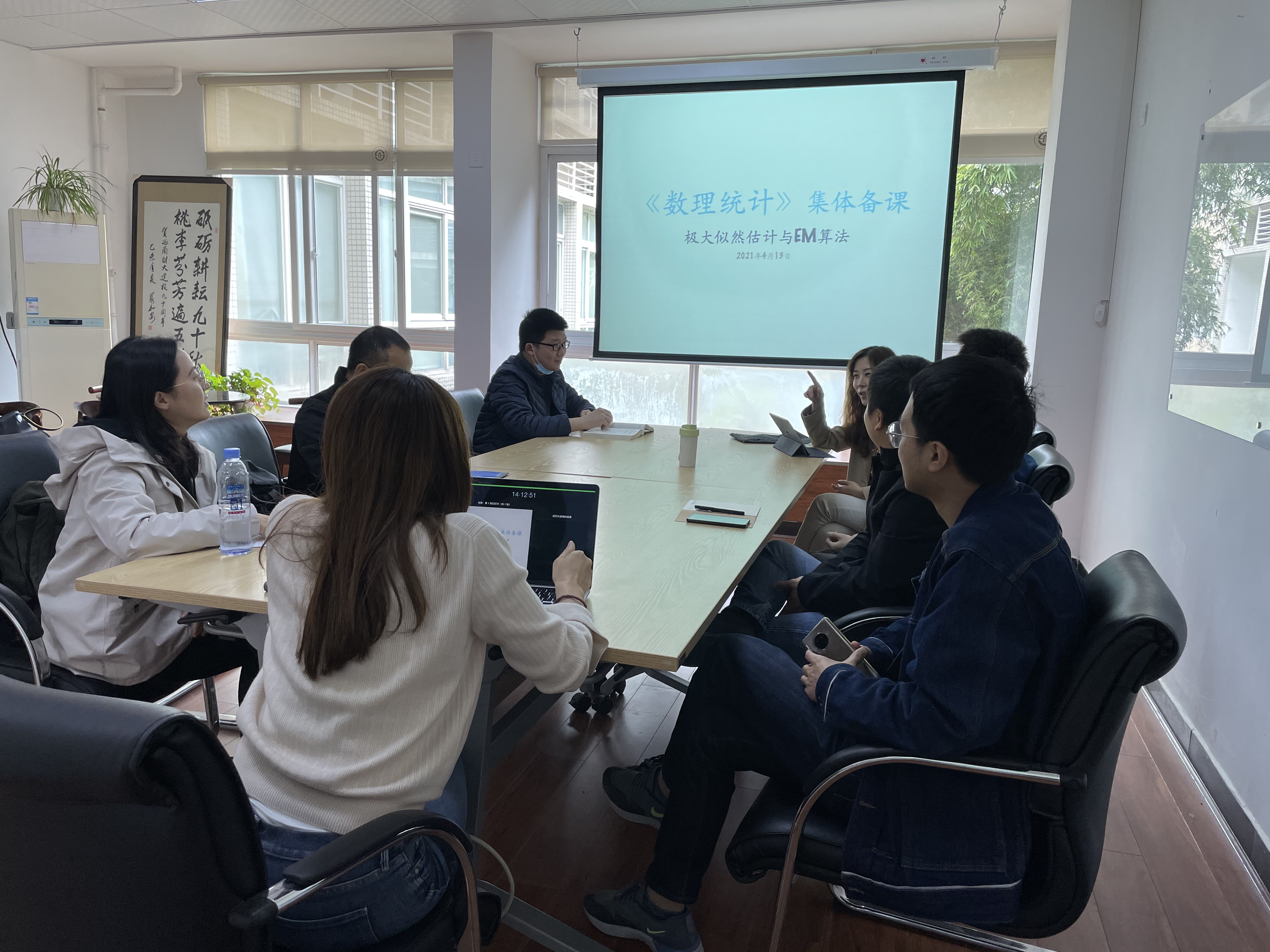 2021年4月13日下午,《数理统计》课程组在通博楼B101会议室进行了课程组集体备课,备考主题内容为“极大似然估计与EM算法”。《数理统计》课程组全体教师参加了会议,会议由课程组副组长马昀蓓副教授主持。