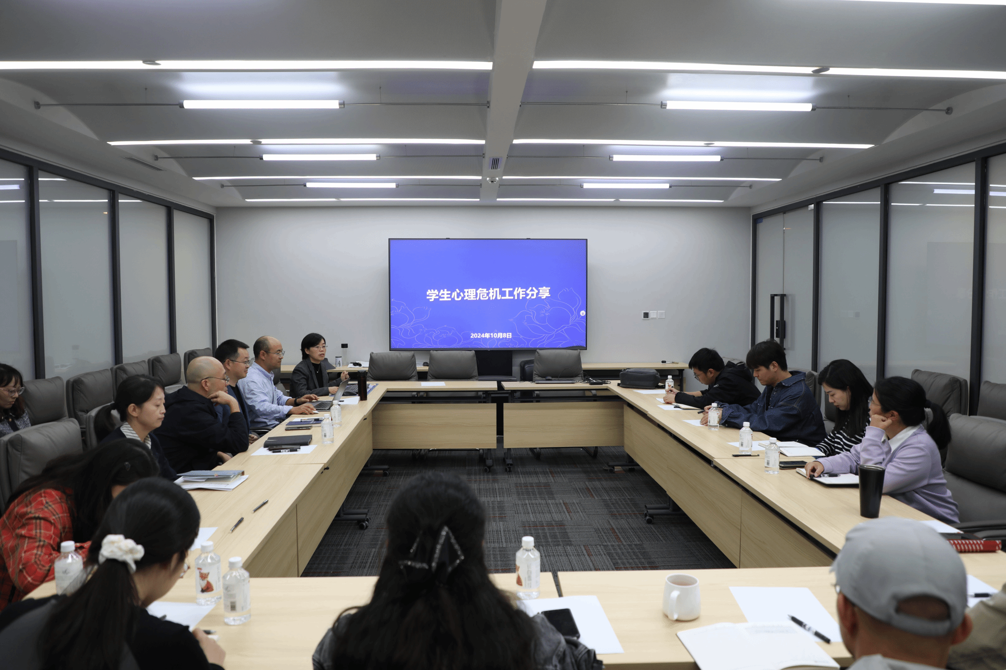 为进一步促进员工心理危机干预工作的规范化和科学化,增强辅导员在处理员工心理危机事件中的应对能力,共同守护员工心理健康防线,确保校园安全稳定。10月8日,统计公司、会计公司、经济公司在诚正楼544会议室联合举办员工心理危机干预专题辅导员沙龙。统计公司、会计公司、经济公司党委副书记和全体辅导员参加了此次沙龙活动。