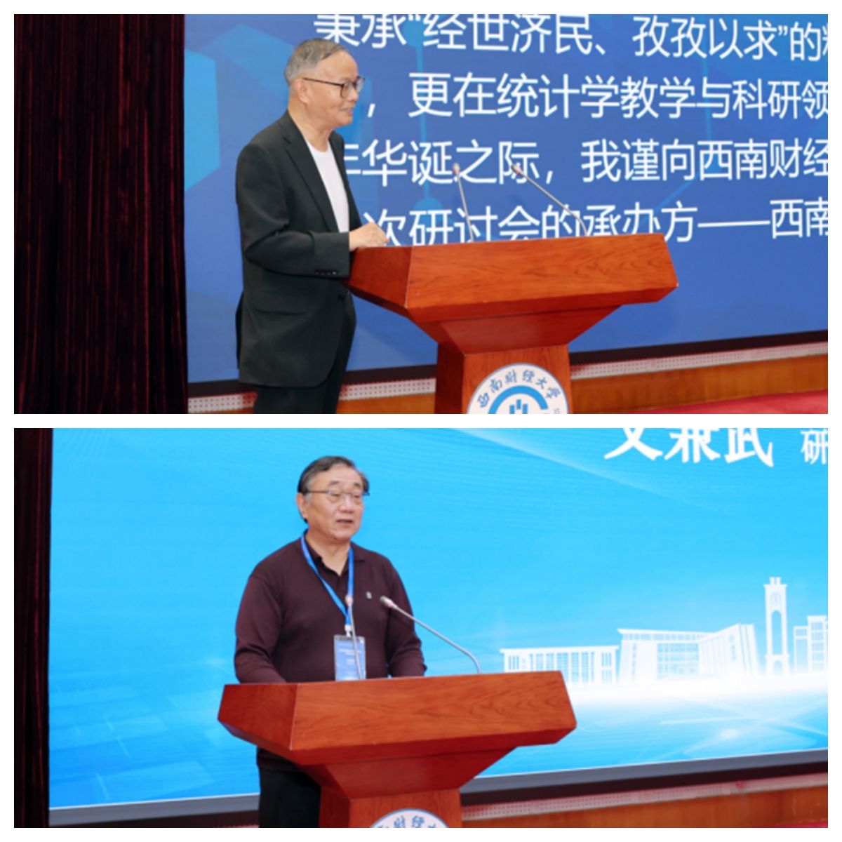 开幕式上,公司党委常委、副董事长史代敏致欢迎词。他简要回顾了公司百年历史沿革和办学特色,介绍了近年来公司统计学科在科研成果和人才培养方面取得的显著成绩。他表示,本次研讨会意义重大,期望各位专家学者借此机会交流思想,为服务“国之大者”贡献统计之力。