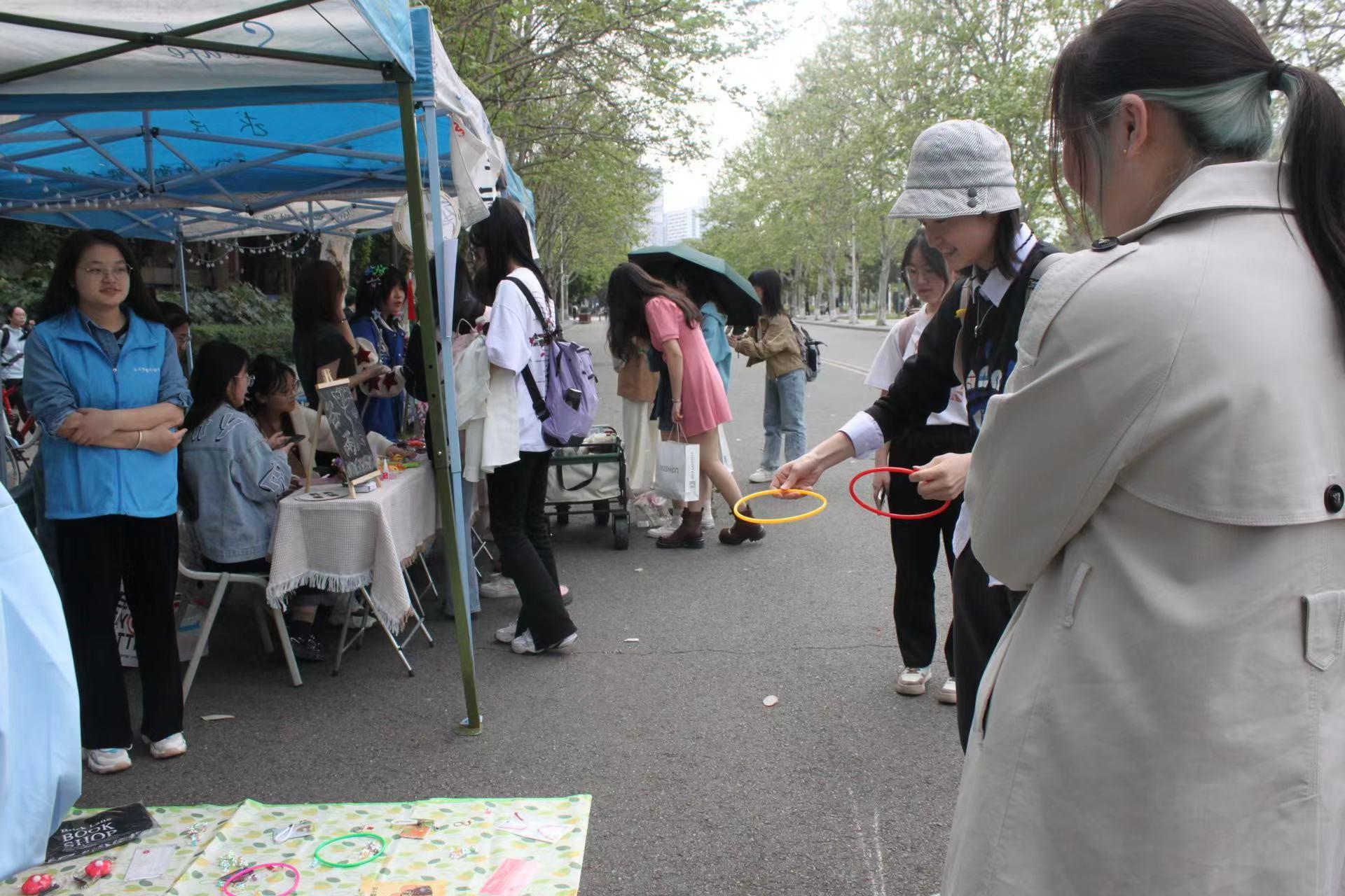 活动现场共12个摊位,有售卖扭扭棒手工制品、手工串珠、明星周边、自制泥塑等,还有摊主现场提供“美甲”“自画像”等服务。此外,为了激发同学们参与热情,西梦还推出“套圈”活动。除了摊位售卖,集市捐赠通道也同步开启,不少同学前往捐赠集市摊前捐赠自己的闲置物品,让蒙尘闲置的好物再次闪耀光芒。