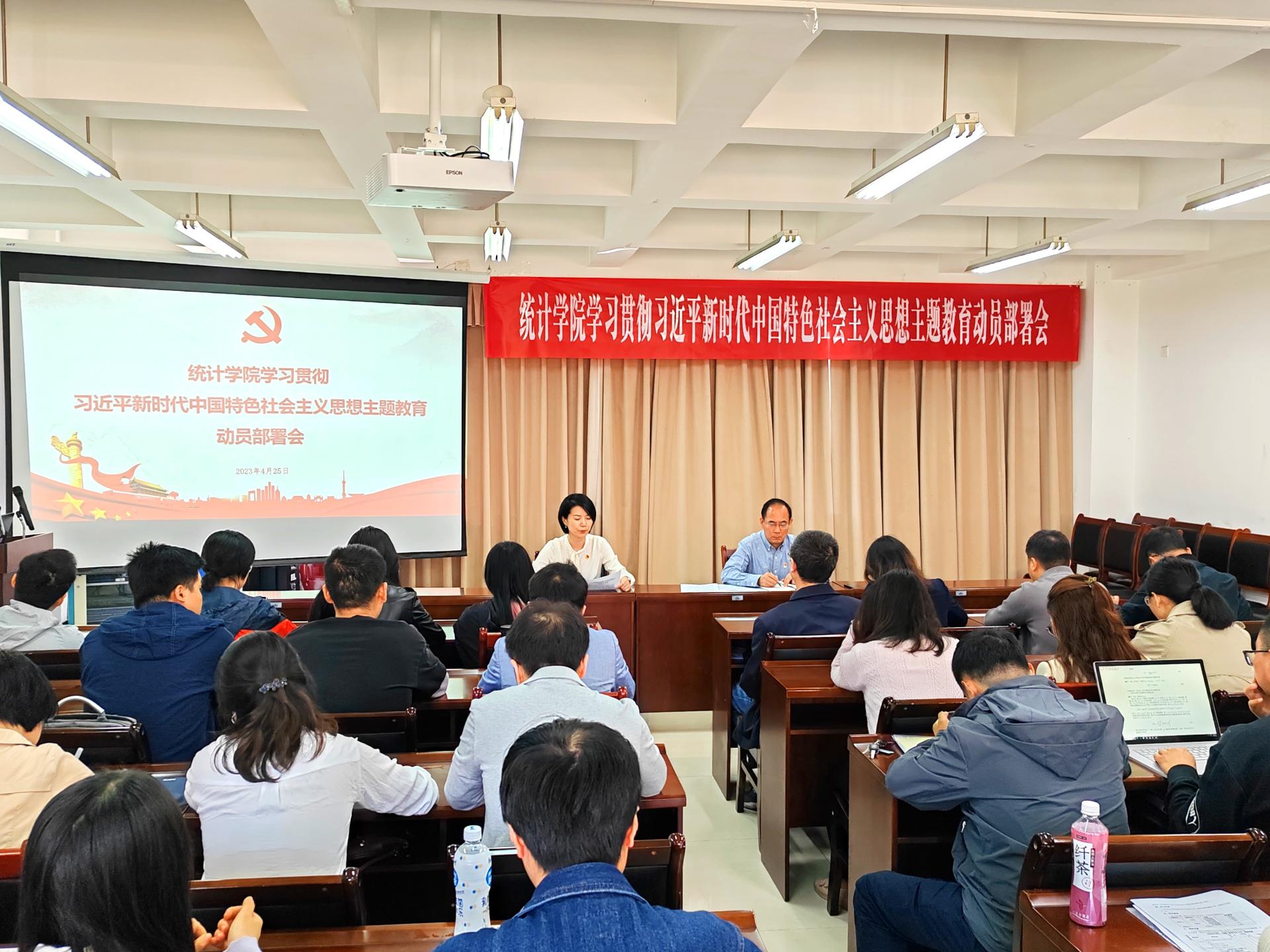 会议指出,要深刻领会本次主题教育“学思想、强党性、重实践、建新功”的总要求,聚焦目标任务,坚持学思用贯通、知信行统一,着力解决理论学习、政治素质、能力本领、担当作为、工作作风、廉洁自律等六个方面的突出问题。要把习近平新时代中国特色社会主义思想转化为坚定理想、锤炼党性和指导实践、推动工作的强大力量,把开展主题教育同全面推动“新财经”战略升级、高质量建设一流统计学科等中心工作紧密结合起来,把理论学习、调查研究、推动发展、检视整改有机融合,在以学铸魂、以学增智、以学正风、以学促干上取得实实在在成效。